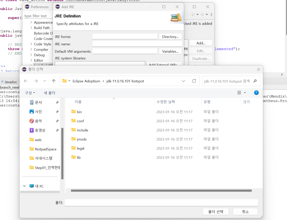 JDK Compiler를 mendix의 버전인 11로 변경한다.