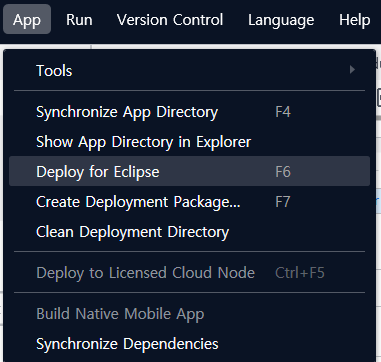 Mendix Studio Pro에서 App > Deploy for Eclipse를 클릭한다.